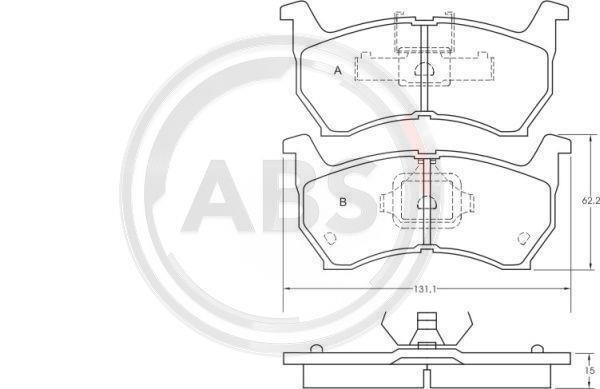 Комплект тормозных колодок, дисковый механизм A.B.S. 36531