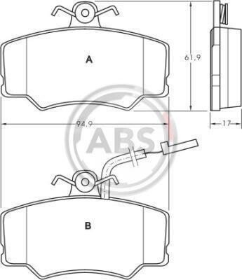 Комплект тормозных колодок, дисковый механизм A.B.S. 36706