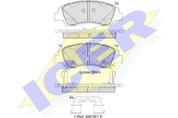 Комплект тормозных колодок, дисковый механизм ICER 182178