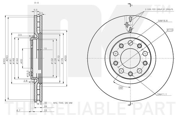 Диск гальмівний невентильований NK 312370