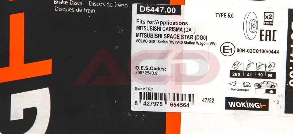- WOKING D6447.00 подходит к маркам/моделям авто: