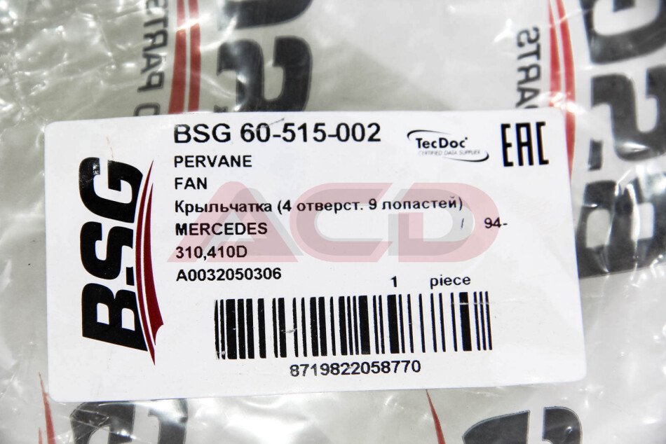 Вентилятор радіатора Sprinter/Vario OM602 (4 кріпл) BSG BSG 60-515-002