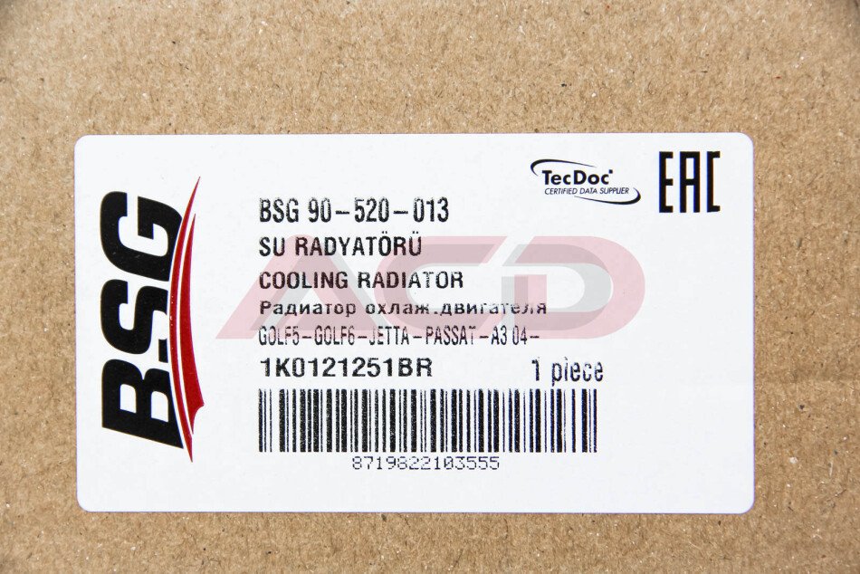 Радіатор води Caddy III 2.0SDI/1.4i/1.6i /Golf/Octavia (+/- AC) (650x398x26) BSG BSG 90-520-013