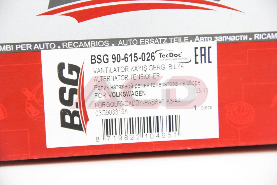 Натягувач ременя генератора 1.9-2.0 TDI Caddy 04-06/Golf V/Passat B6 BSG BSG 90-615-026