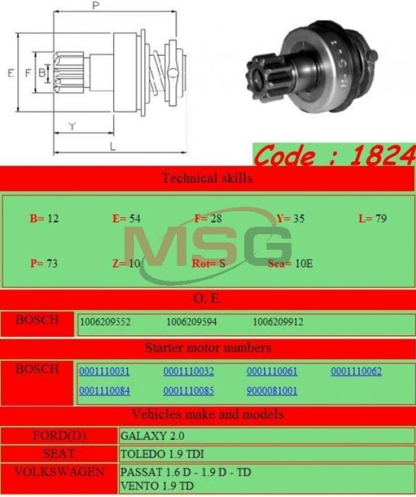 Бендикс стартера GHIBAUDI MARIO 1824