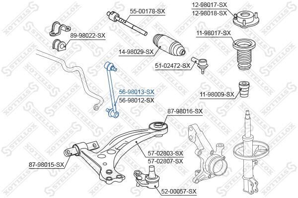 Тяга стабілізатора переднього ліва STELLOX 56-98013-SX